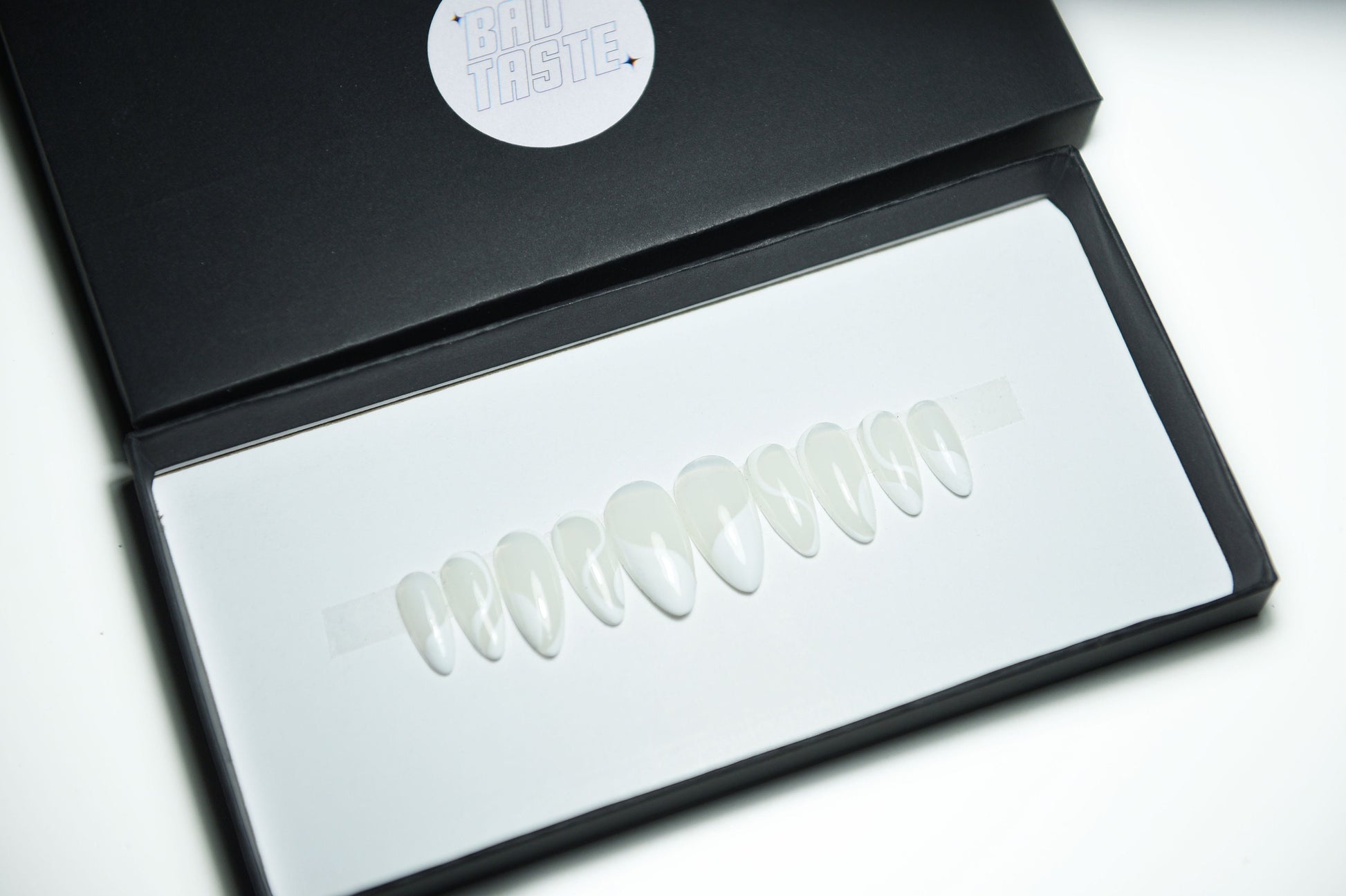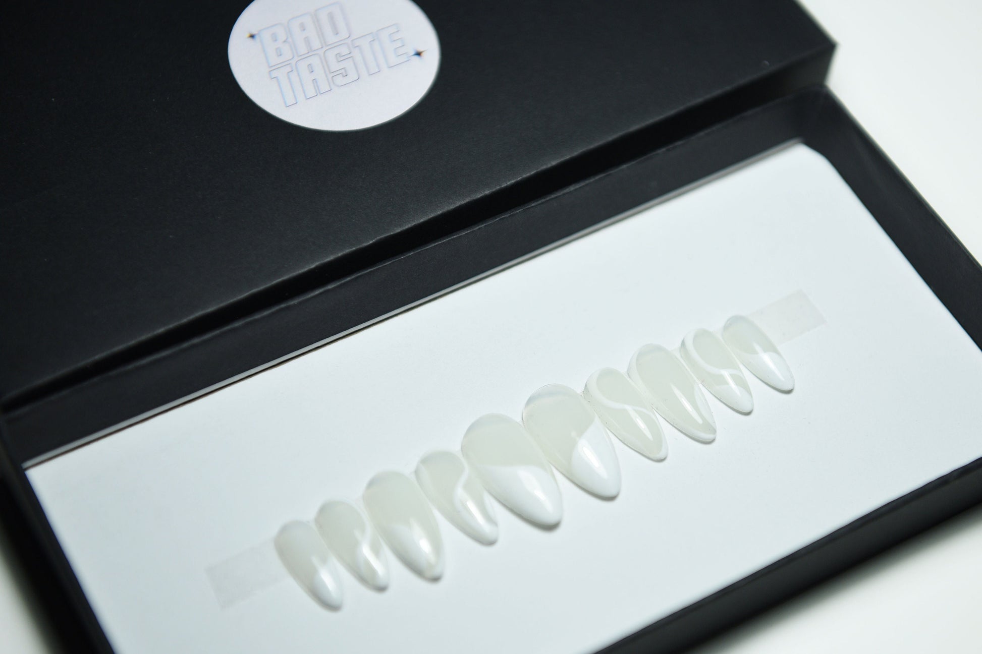 Our luxury press-on nails are handmade with care, giving you flawless, modern nails in minutes. The Abstract Lines French set features unique, hand-painted linear art on classic French tips—choose matte or glossy for your perfect finish.