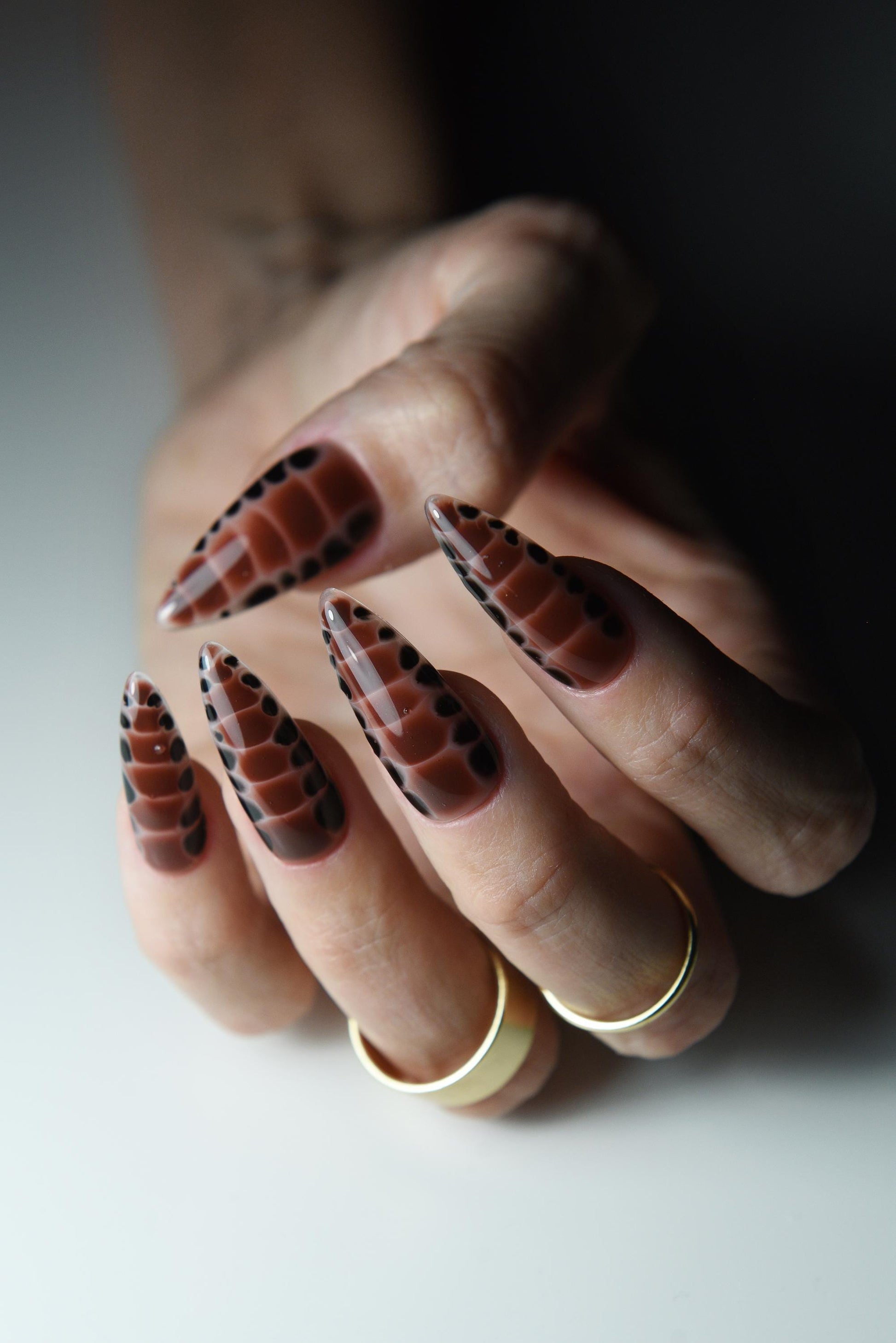Brown Snake Skin Animal Print Press-On Nails – Glossy or Matte Finish, Handmade Luxury Reusable Set, Salon-Quality Fake Nails