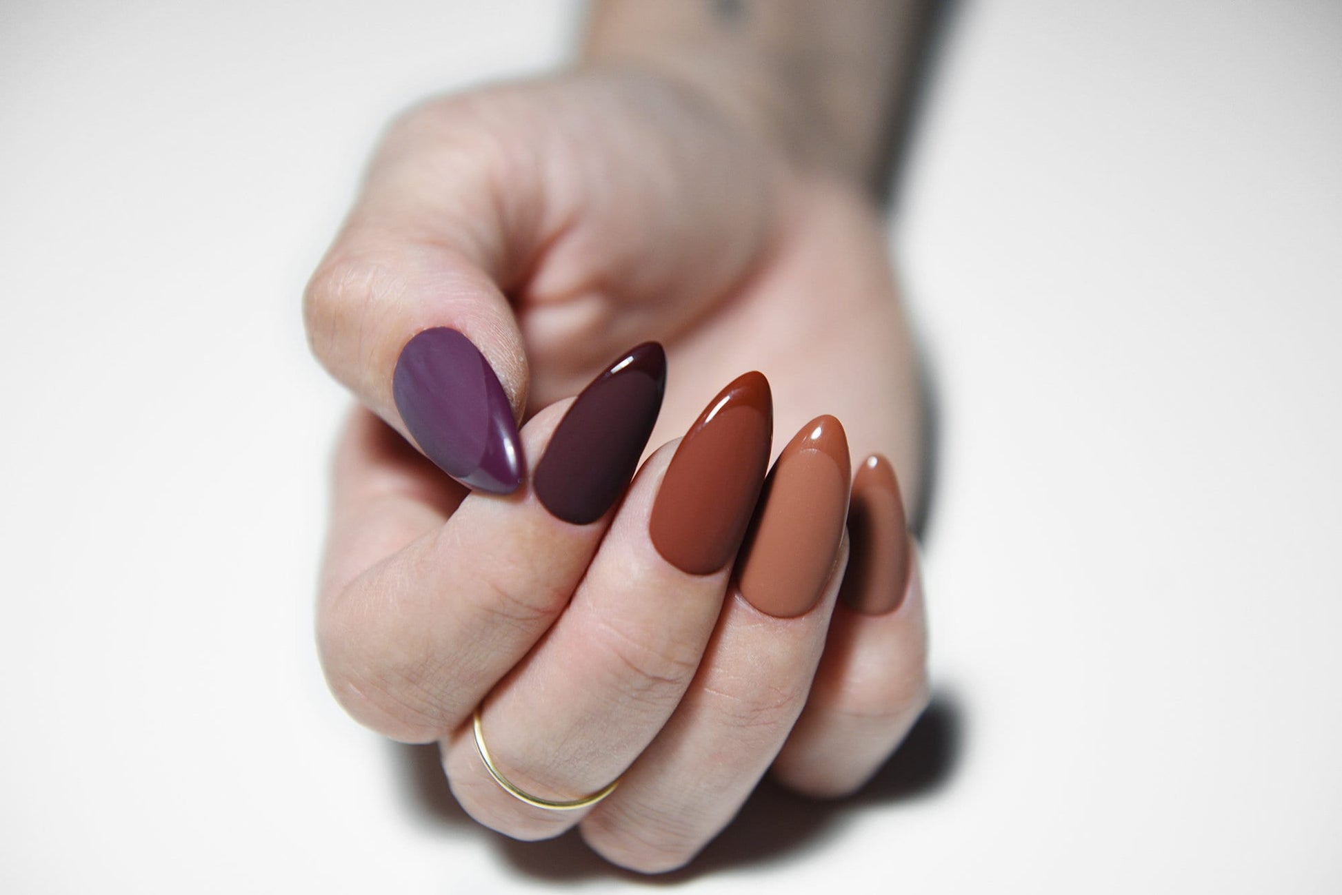 Get cozy this autumn with our Fall Ombre Matte French Press-On Nails, hand-painted in gorgeous brown, pumpkin, cinnamon, and purple shades. Perfect for back-to-school, autumn vibes, or a seasonal style refresh.