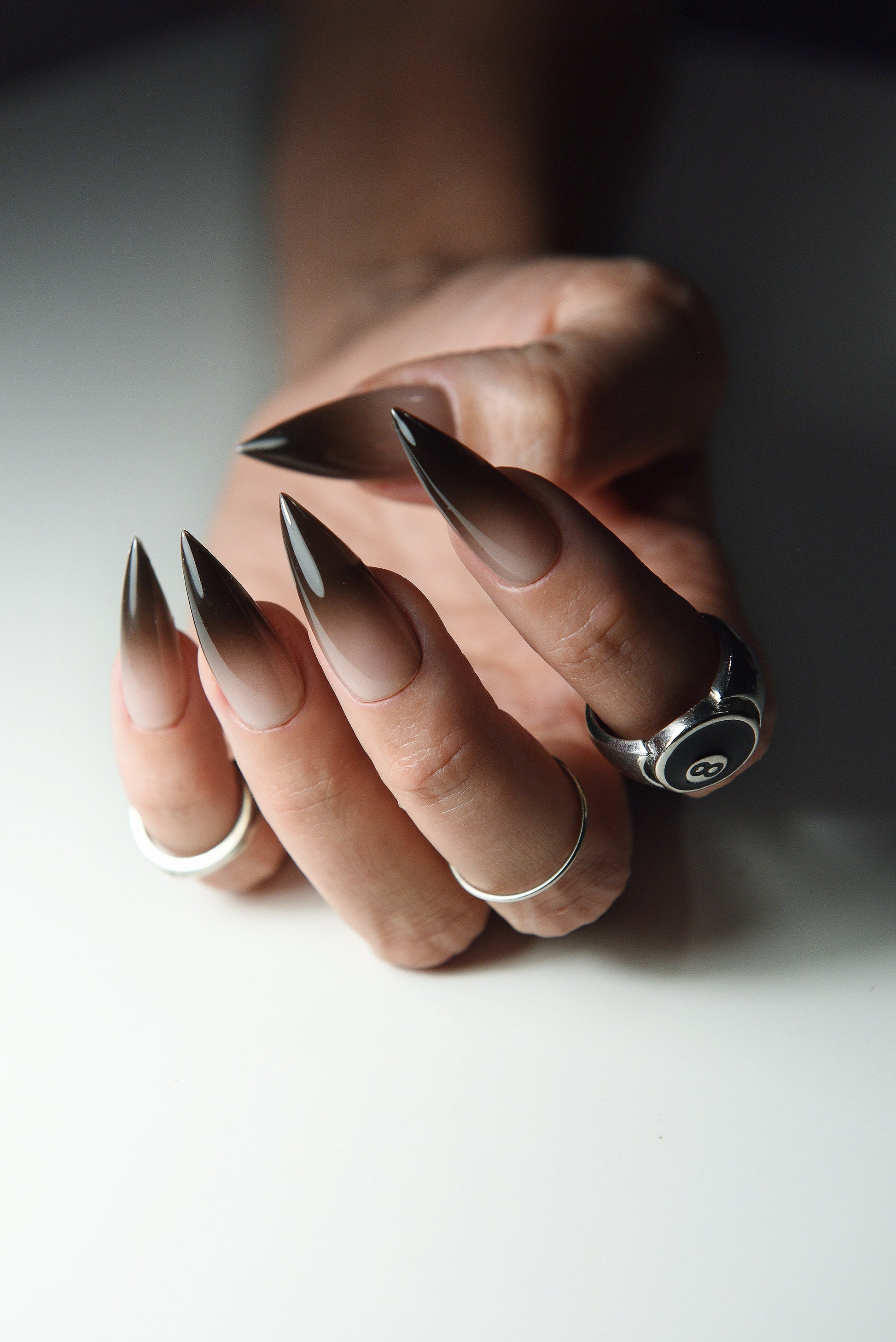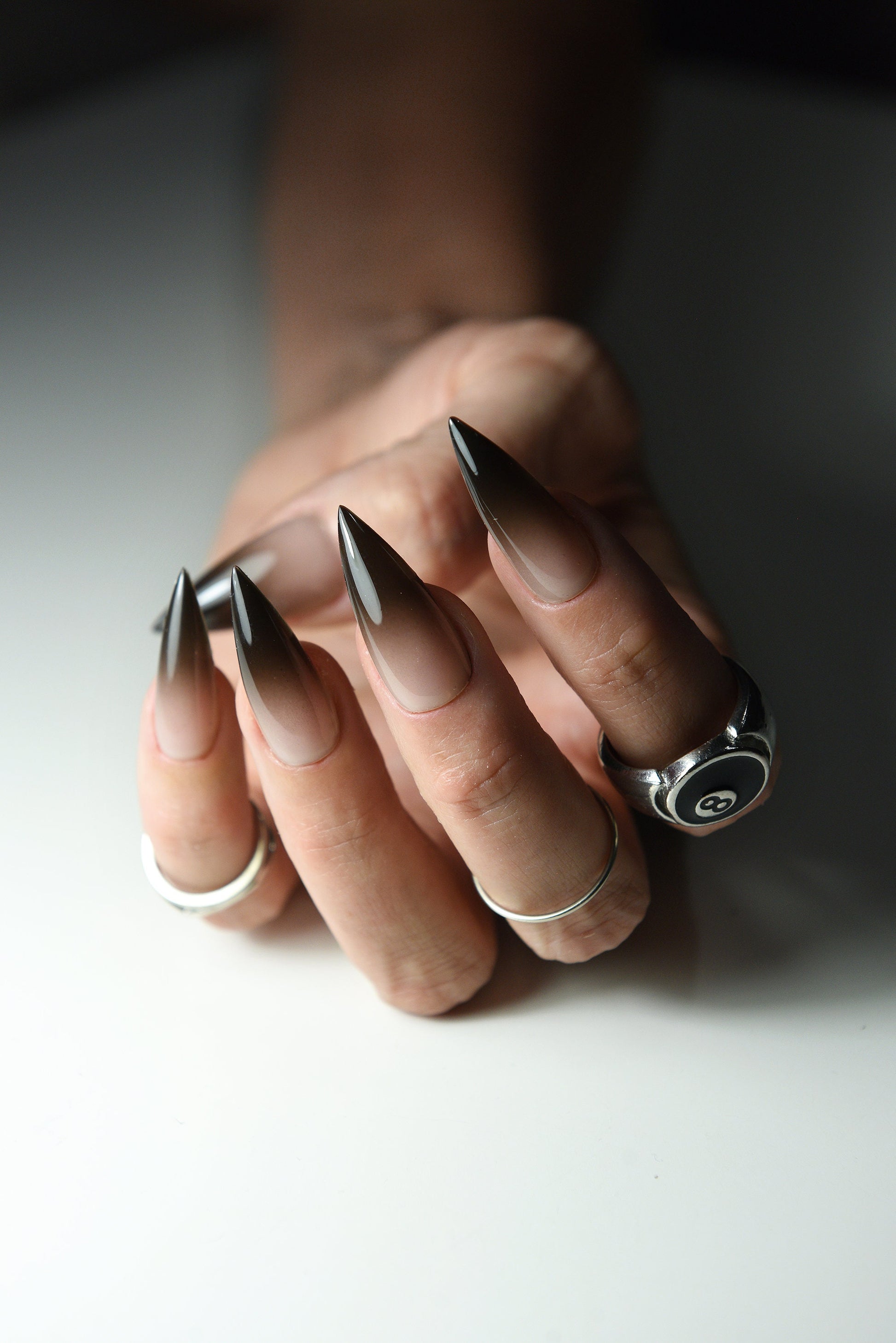 Goth Ombre Press-On Nails – Nude to Black Handmade Gothic Set