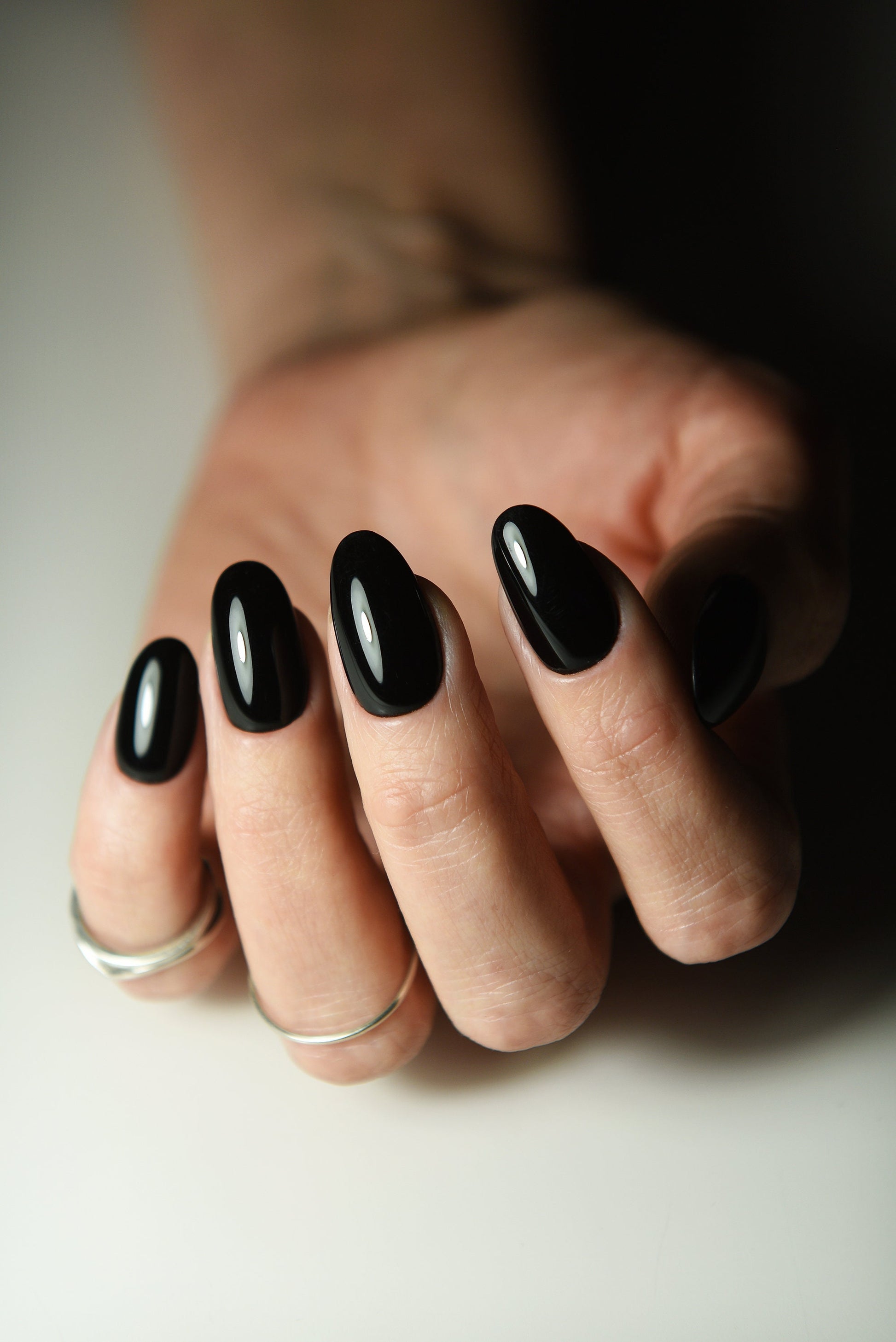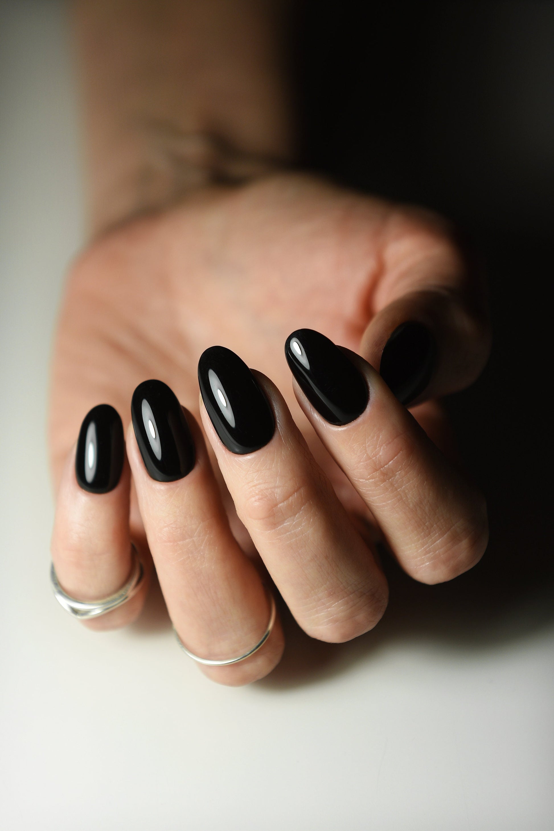Latex Black Press On Nails – Glossy Handmade Reusable Nail Set