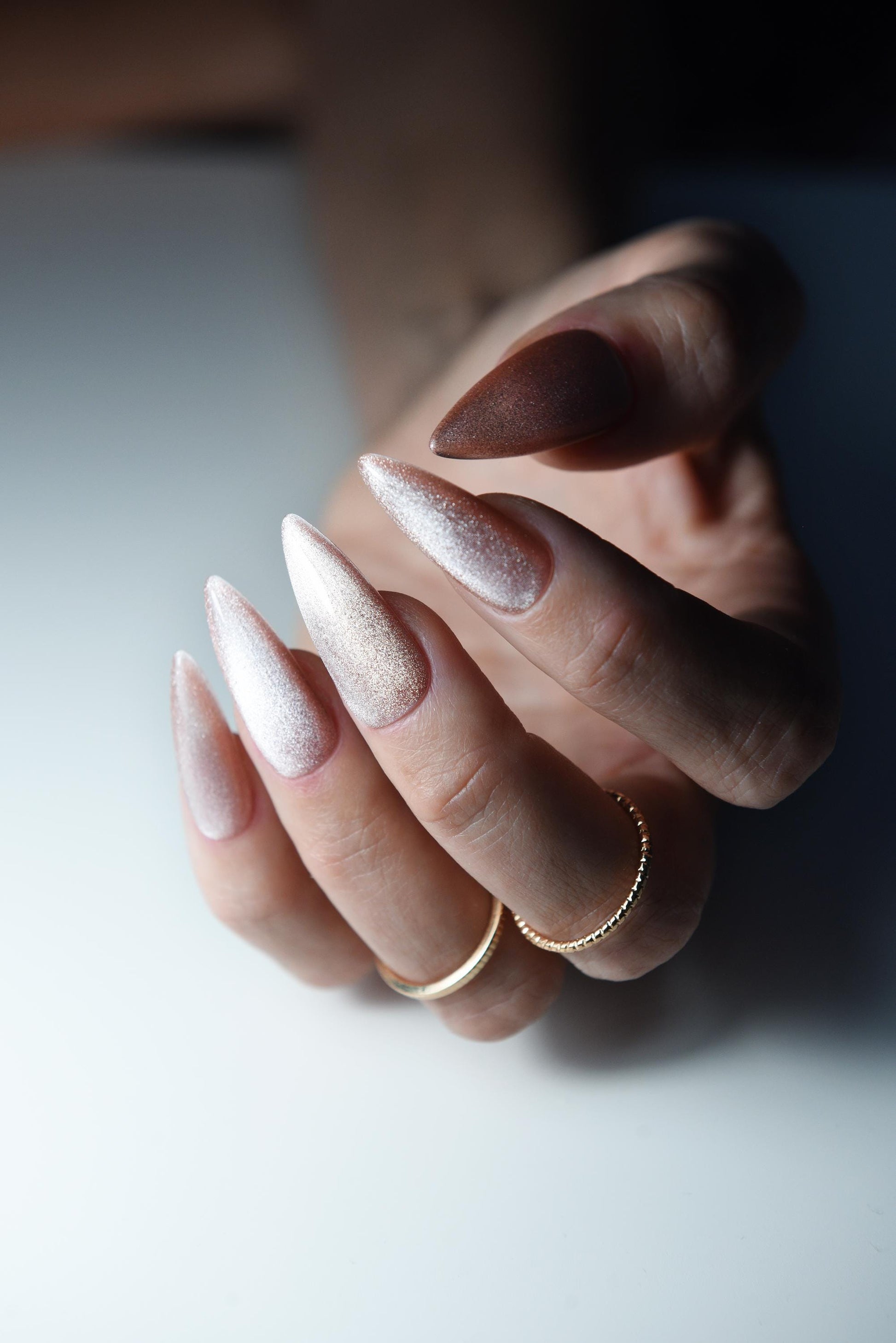 - Unique magnetic cat eye effect in a nude, shiny finish
