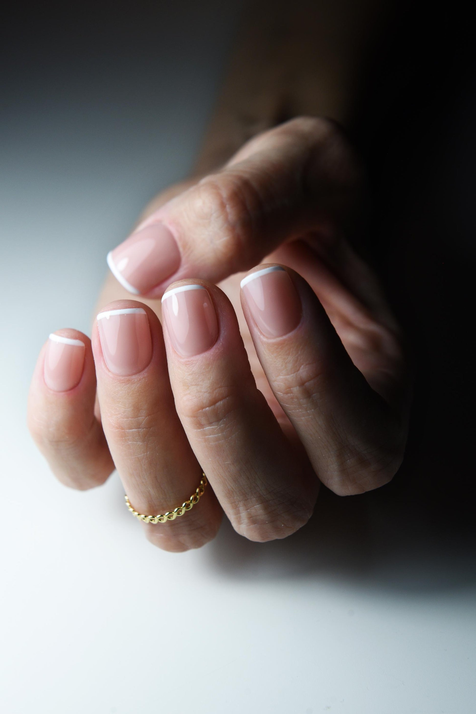 Minimalist nude base with delicate white micro French tips – a timeless, clean, and classy look that fits every occasion. Perfect for brides, professionals, minimalists, and anyone who loves subtle luxury.