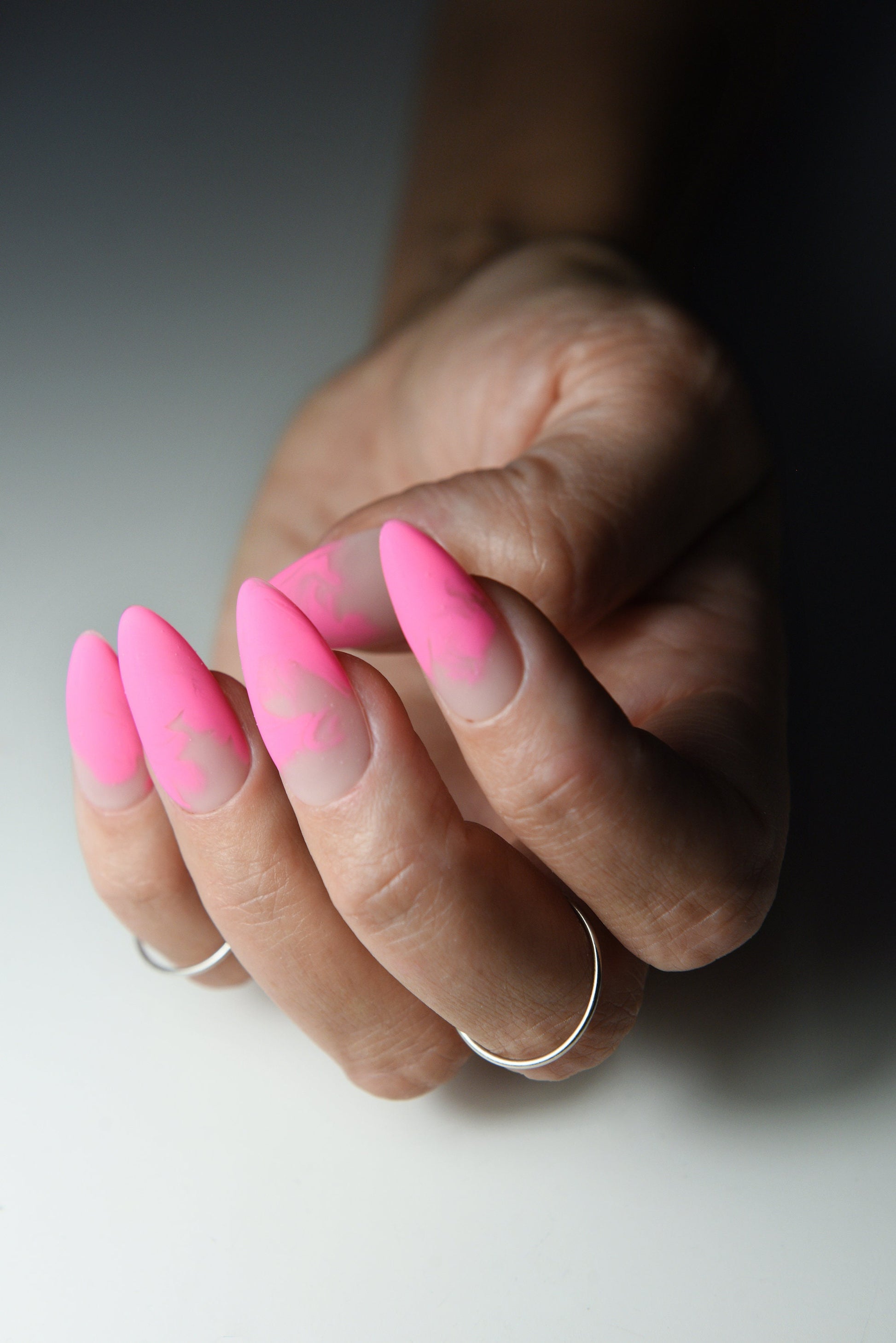 Nude base with neon pink smoke effect – flirty, fun, and totally unique.