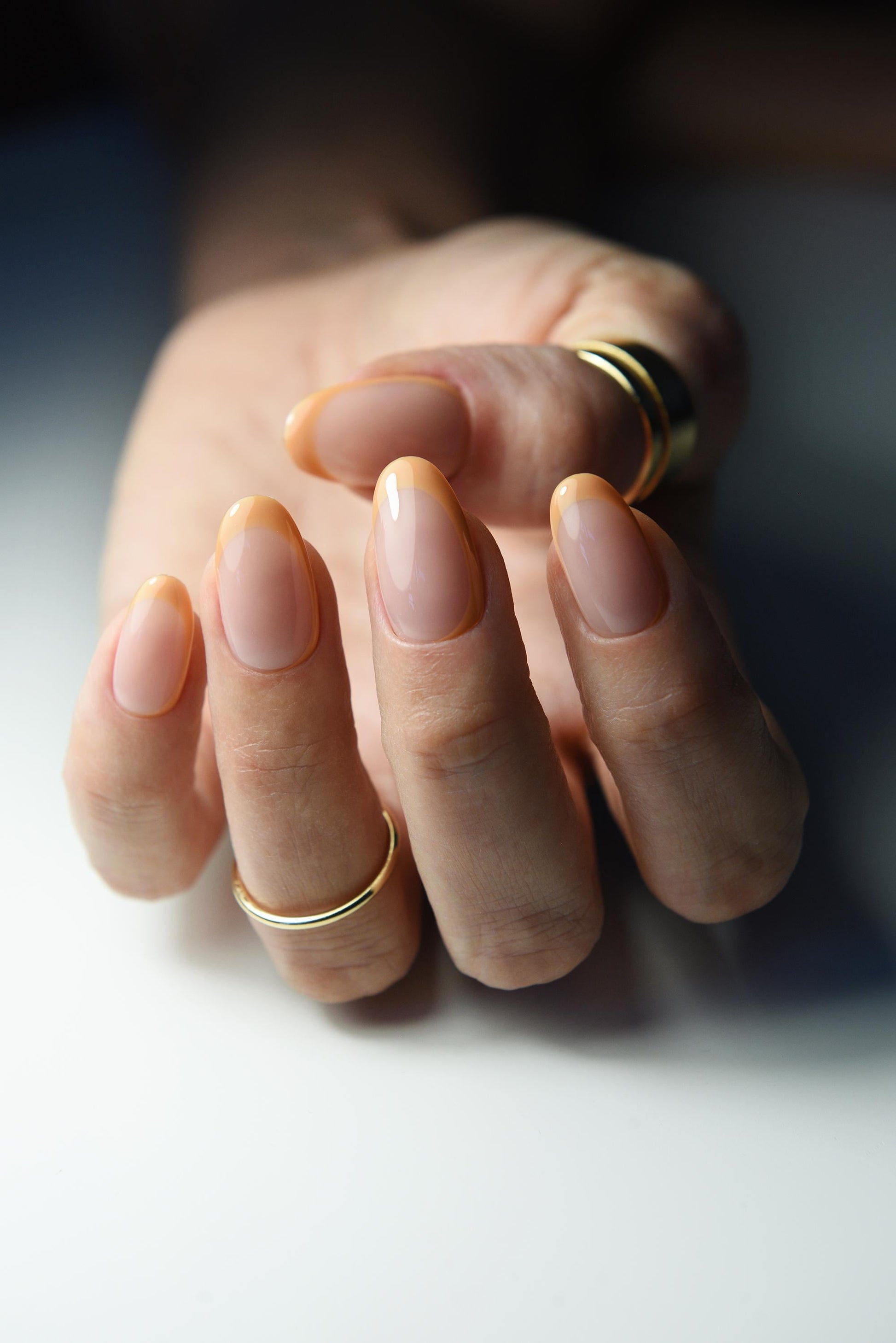 - Trendy half French design in pumpkin orange and nude beige