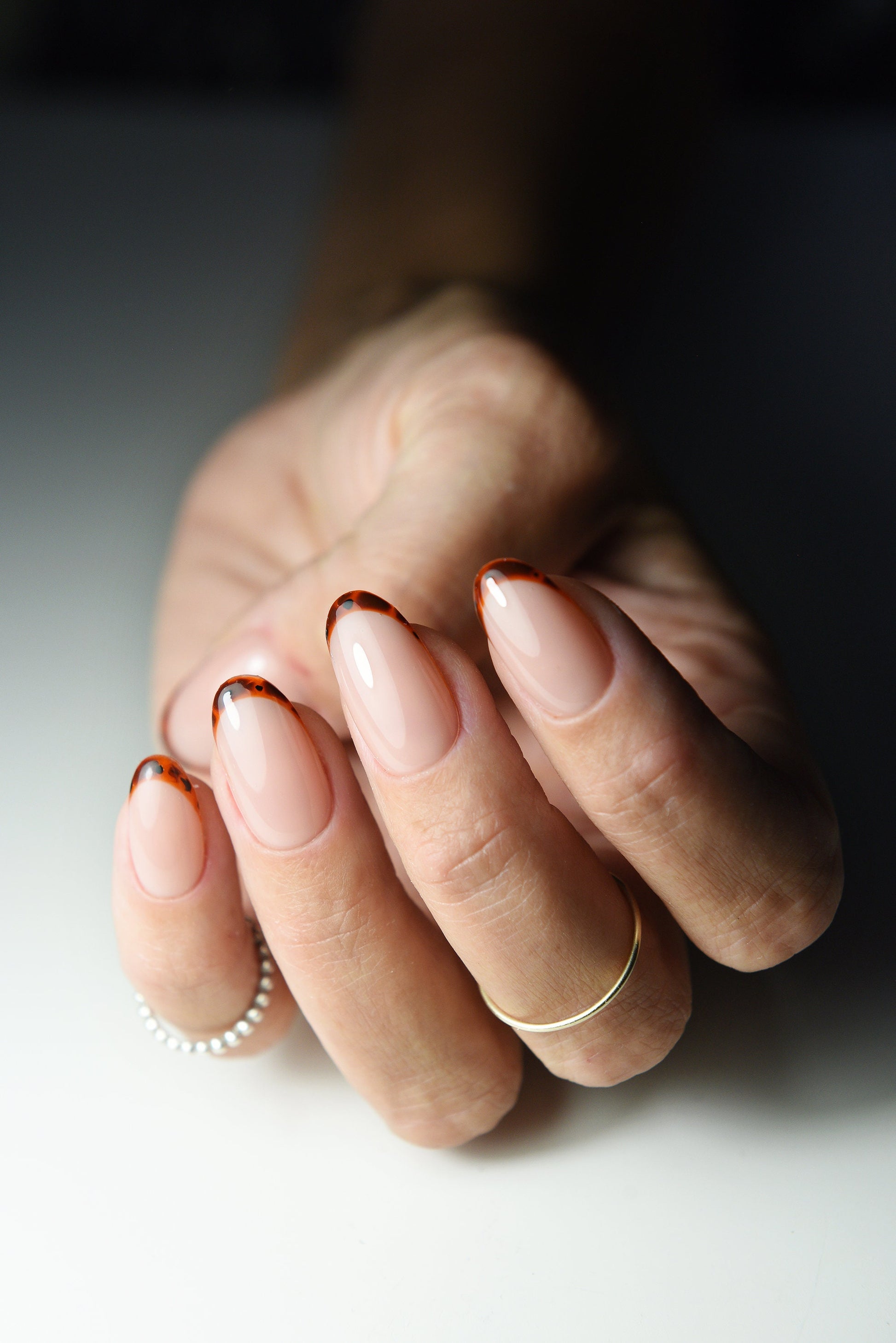 Design: Tortoise Shell French – thin line, classy French tip on a strong builder gel base. Acrylic-like press on nails, perfect for both everyday style and special occasions. Available in long or short versions, stiletto, coffin, almond, and more. Ideal for spring, but timeless all year round.