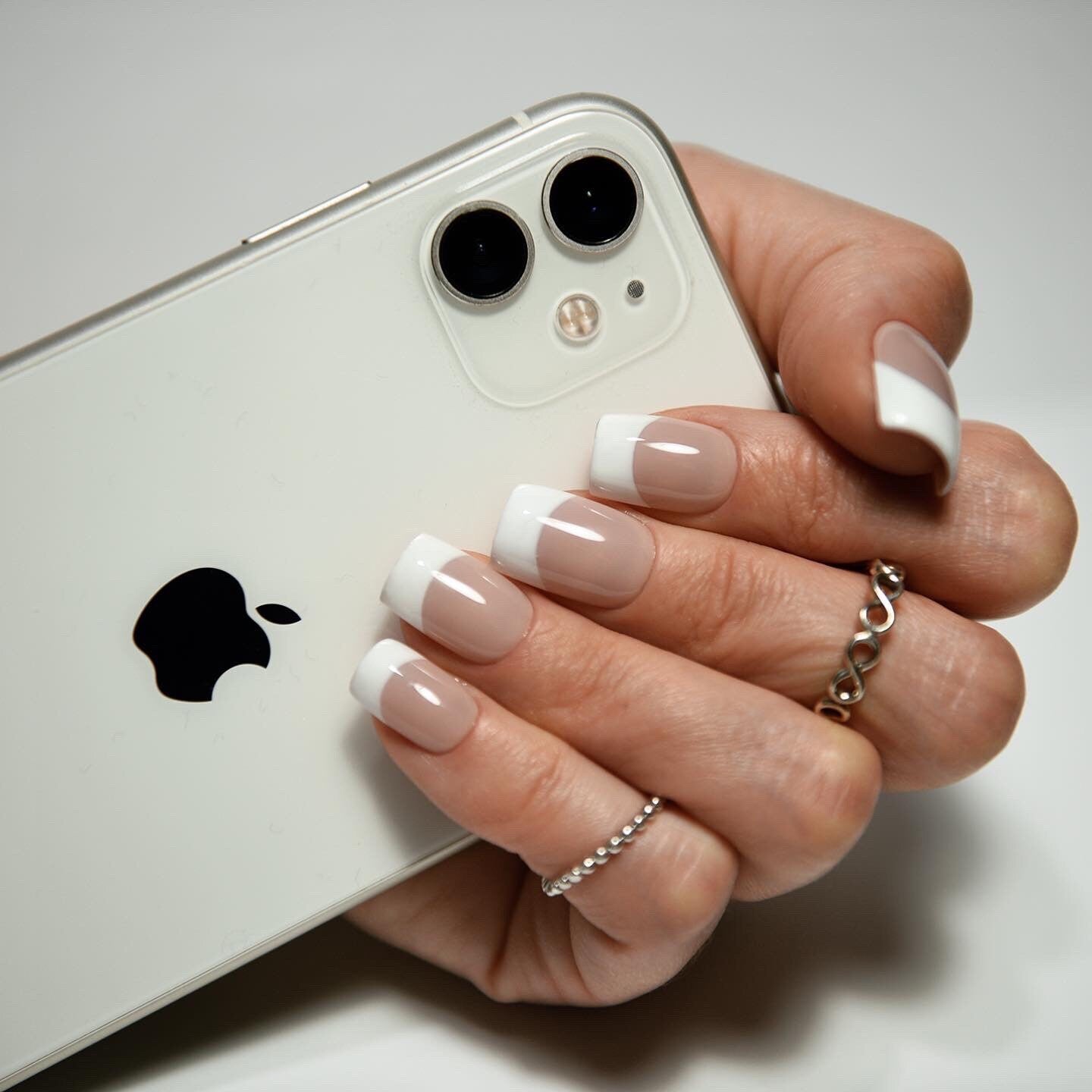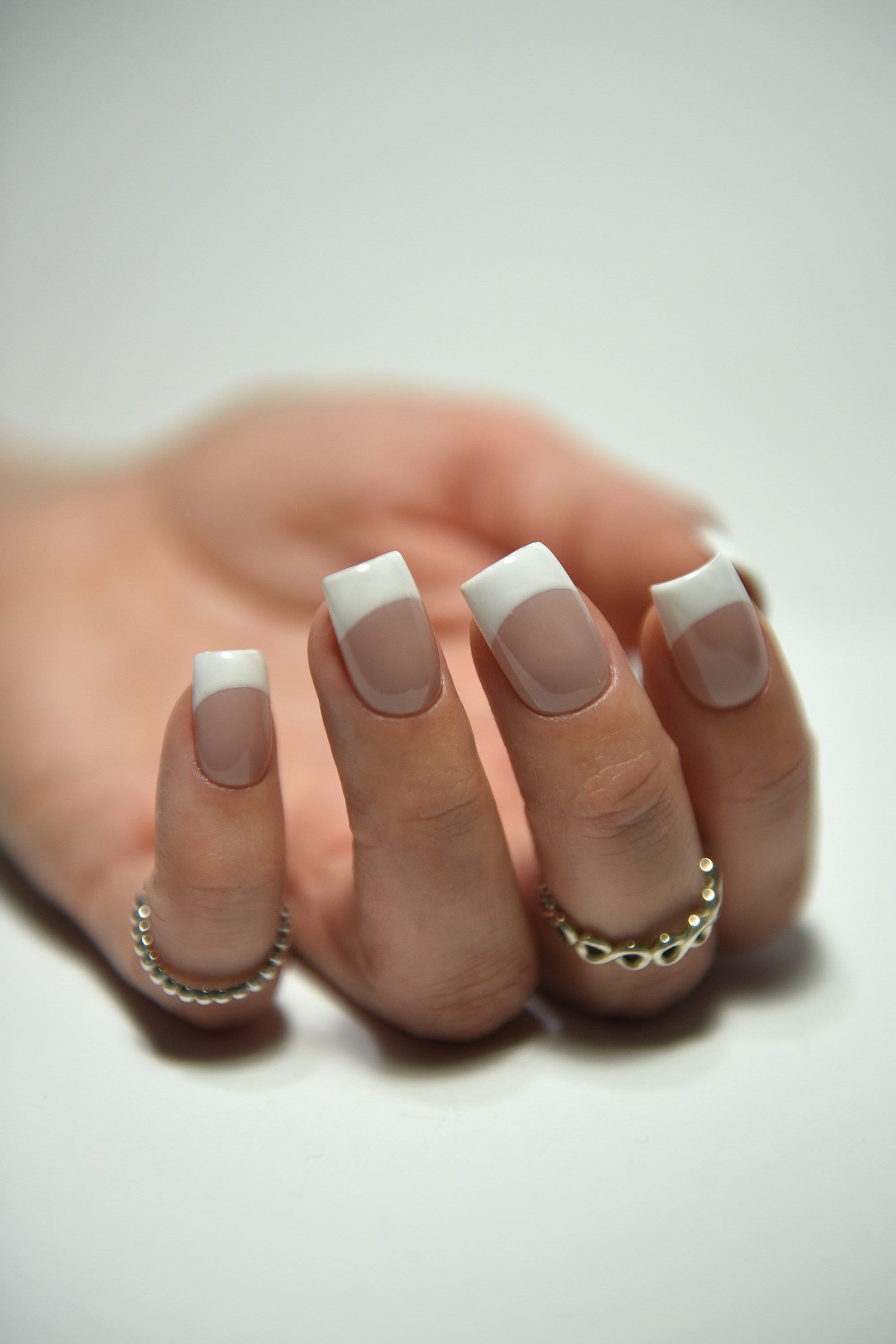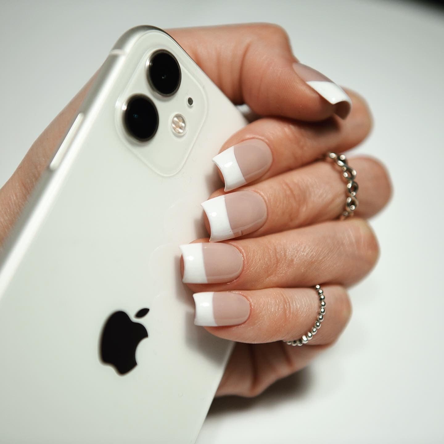 - Classic white French tips, inspired by 90s & Y2K style
